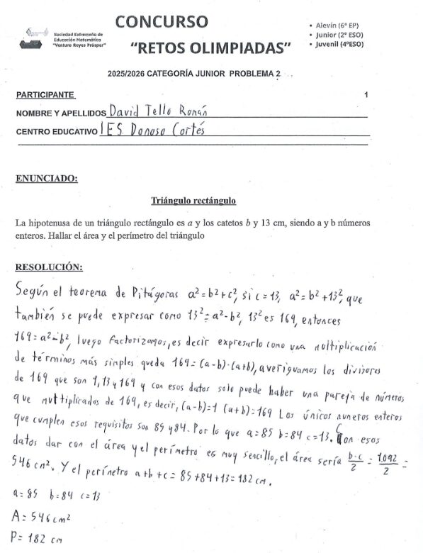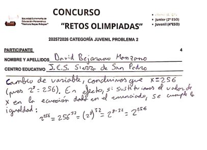 La resolución elegida como ganadora del problema 3 ha sido la realizada por Lola Gutierro Nieto del IESO Sierra La Mesta (Santa Amalia) ¡¡ Enhorabuena !!