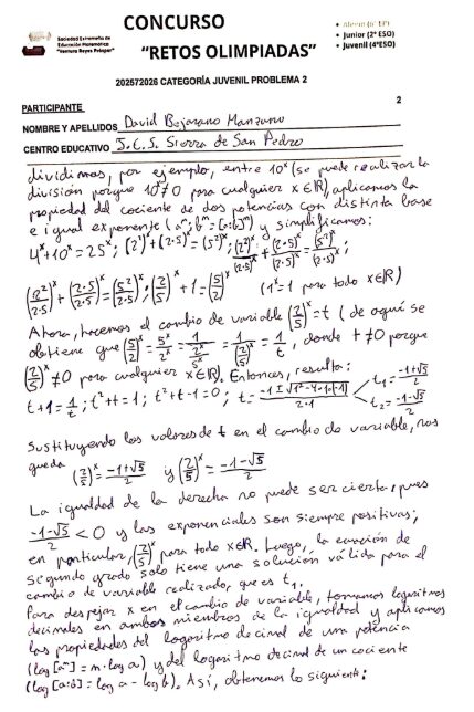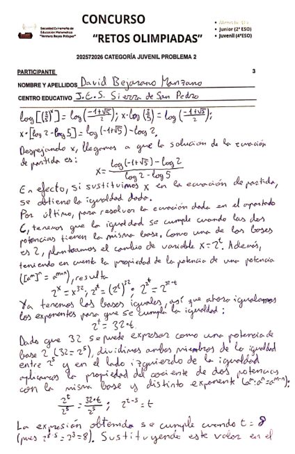 - Escanea en orden ascendente a la numeración de páginas los folios que hayas usado en la resolución del problema. Se guardarán en un único archivo en formato pdf (máx.10MB), nombrado problema-numero-categoría-nombre completo del participante (Ejemplo: problema2AlevinJavierSierraRosa).
