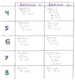 Las resoluciones recibidas han estado muy acertadas, pero no todas han conseguido los números del 1 al 9 de dos formas diferentes, tal y como se pedía en el enunciado del problema 1.