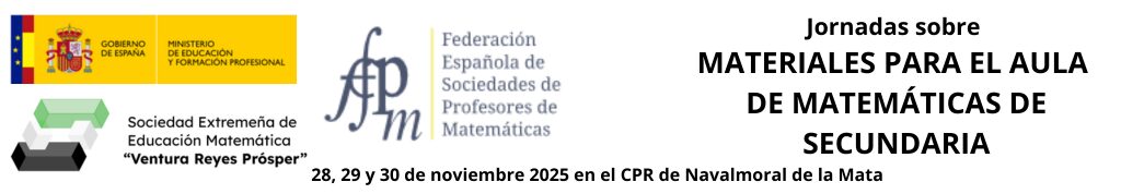 CPR de Navalmoral, Av. San Isidro, 16, 10300 Navalmoral de la Mata, Cáceres Av. San Isidro, 16, Navalmoral de la Mata, Cáceres, SpainJornadas sobre MATERIALES PARA EL AULA DE MATEMÁTICAS DE SECUNDARIA 28, 29 y 30 de noviembre de 2025. CRP de Navalmoral de la Mata