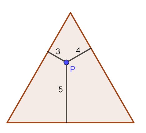 a) Las distancias de un punto P a cada lado de un triángulo equilátero son 3cm, 4 cm y 5 cm. Halla el área del triángulo
