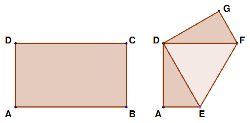 Con el fin de dar la bienvenida a la olimpiada a los alumnos participantes se ha confeccionado una pancarta rectangular. Si se pliega haciendo coincidir un vértice con el simétrico respecto al centro, se obtiene un triángulo equilátero de 2 m de lado (vértices los puntos D, E y F) tal y como se observa en la figura.